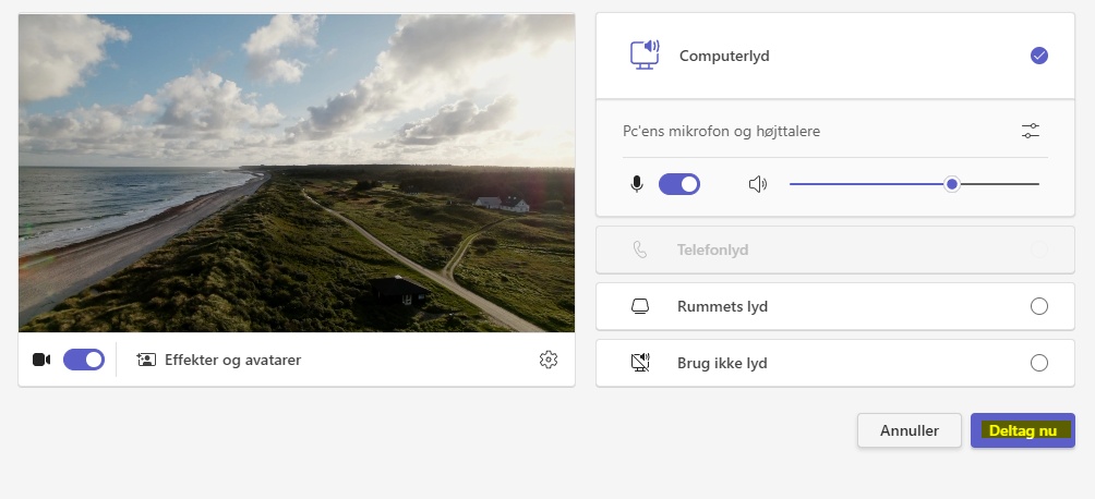 Kunne du godt tænke dig en Jammerbugtsk baggrund bag ved dig, når du deltager i Teams-møder? Tjek mappen "Baggrundsbilleder til Teams" og download det billede, du ønsker som baggrund.